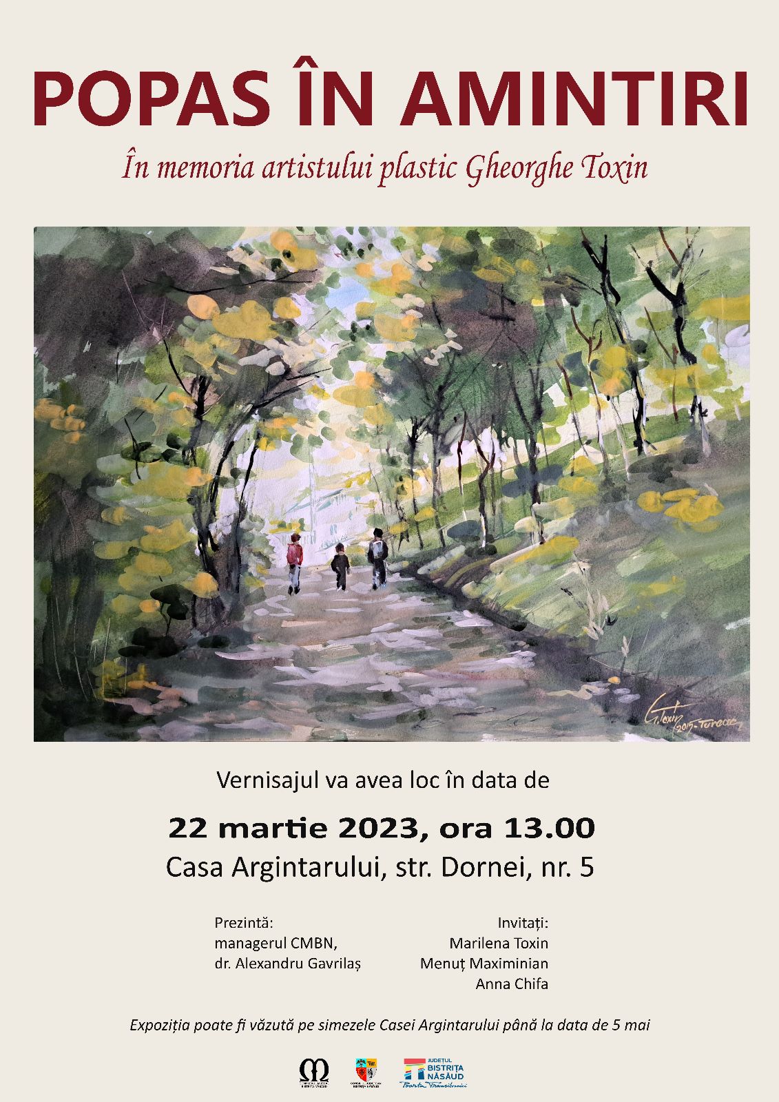 Miercuri, 22 martie 2023, ora 13.00, Complexul Muzeal Bistriţa Năsăud, secţia Casa Argintarului vă invită la vernisajul expoziţiei de pictură ”Popas în amintiri” a artistului plastic Gheorghe Toxin.