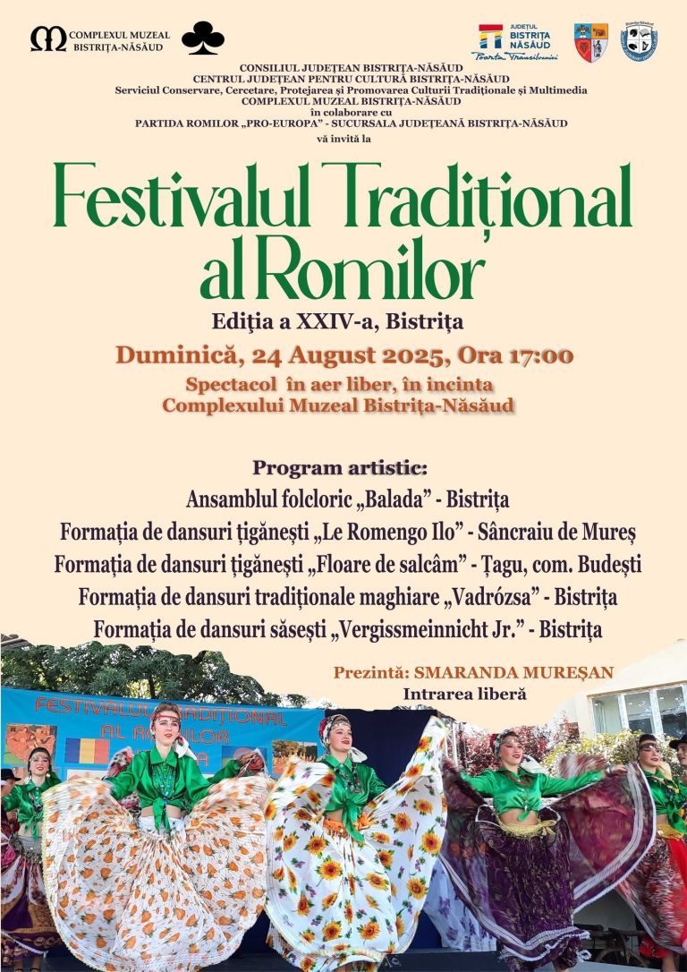 Consiliul Județean Bistrița-Năsăud, prin Complexul Muzeal Bistrița-Năsăud, organizează în perioada 15–17 august 2025 o nouă ediție a ArtCast Teleki Festival,…