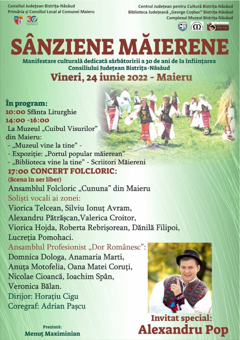 Primăria comunei Maieru vă invită să participați vineri, 24 iunie, la Sărbătoarea „Sânziene Măierene”, o manifestare culturală dedicată sărbătoririi a…